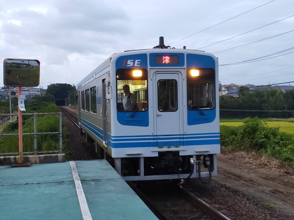 このあとは名古屋に出てから関西本線に乗り換えて、途中で近鉄と競争したりしながら四日市で伊勢鉄道の各駅停車に乗り換え、津から各駅停車の鳥羽行に乗り込みます。