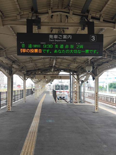 美濃赤坂行きは大昔は本線に乗り入れていて浜松行きとかもあったのですが、今では大垣と美濃赤坂の間だけを往復するようになっています。