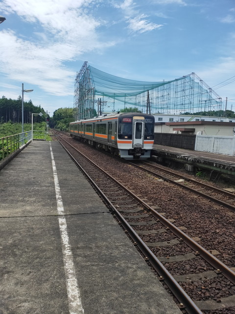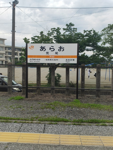 東海道本線内を快走したのち3キロほど先にある信号場で急減速して、上りホームをまたぎながら美濃赤坂方面の線路に入るとすぐに荒尾駅に到着します。