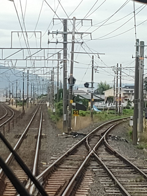 発車してすぐに南荒尾信号場に入り、一番右にある写真でいくと左から