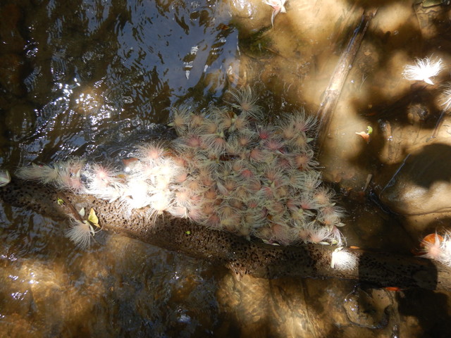 川となって流れが少し出てくると上流からサガリバナの花びらが流れてくるのが分かります。