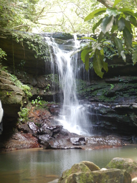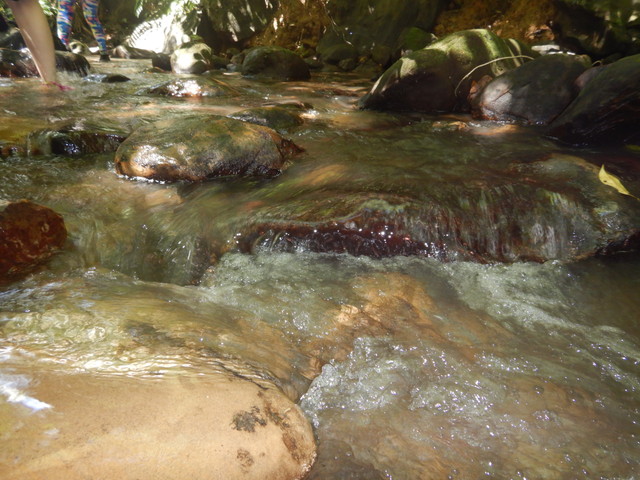 川の中をてくてく20分も歩くと音が聞こえてきて、ほどなくクーラの滝が見えてきます。