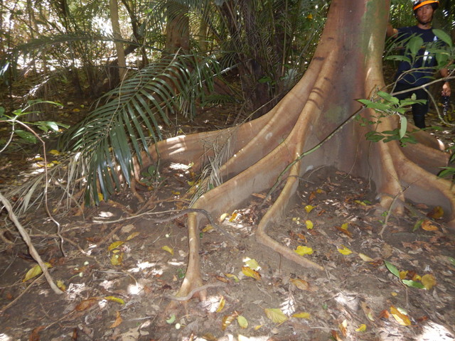 少し入れば、もはや周囲は緑ばかりで方向感覚も失いそうです。インストラクターについていきながらも、時折滑ったりするところや、蜘蛛の巣があったりと互いに声をかけながら歩いていきます。