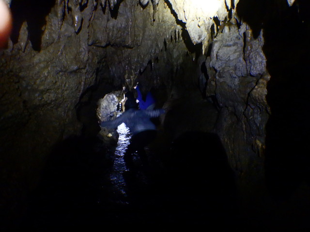 3番目の鍾乳洞は狭いところもあるので、腰くらいまで思い切って水に浸かると案外簡単に抜けることができます。ここらへんは沖永良部島の鍾乳洞がかなりハードなのでそれと比べれば!でしたが、そんなイメージなどない皆さんにとっては、ワイルド感満載だったと思います。