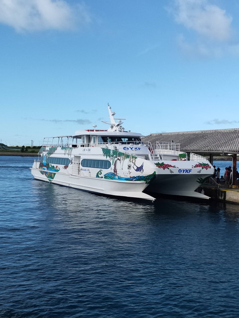 この船は就航して半年ほどの双胴船で乗り心地もよく、50分少々で上原港に到着しました。