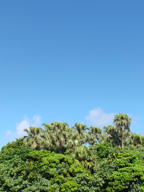 ホテルをチェックアウトし、スーツケースをゴロゴロ引きながら8時前というのに陽射しが強烈な中を離島桟橋へ歩いていきます。これだけでも熱中症になりかねないので日陰を選んで歩きます。
