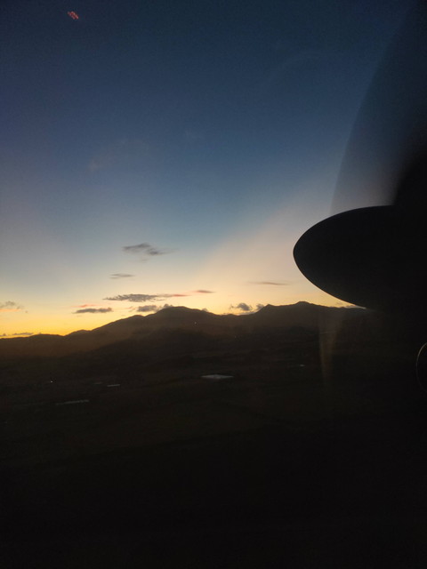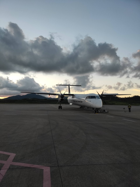 午後に那覇からやってきて、石垣を経由して与那国を1往復して那覇に帰る便のため、ジェット機ではなくプロペラ機(ボンバルディアDHC8-400)です。