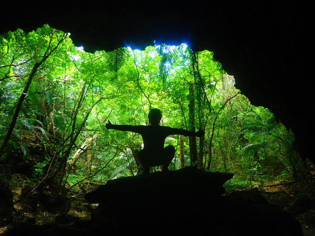鍾乳洞の中は水も流れているので、ところどころくるぶしくらいまで濡れたりします。水は結構気持ち良いですし、時折鳥の鳴き声も聞こえてきます。