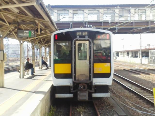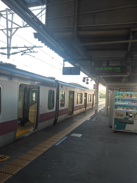 夕方近くなり水戸駅に戻ってからは、上野行き(この時間は10両グリーン車付きでした)に乗って、そのまま帰るのも面白味がないということで友部駅で下車して、階段を渡ったホームから小山行きの水戸線(5両)に乗車。ところどころ一面しかないホームに止まったりとかしながら下館に向かいます。