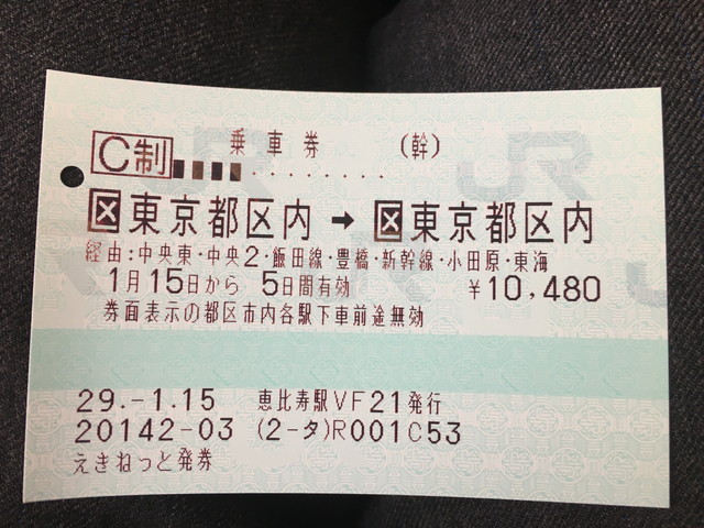 きっぷは金券ショップで購入した新幹線回数券ですが、東京駅から200キロ以上離れているので、東京都23区内のJR駅まではこの回数券(乗車券)でそのまま乗車することができるようになっています。