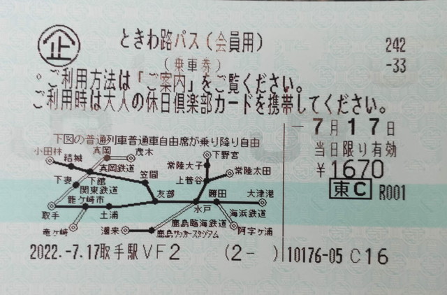 ときわ路パスは茨城県内のJRと一部私鉄が一日乗り放題