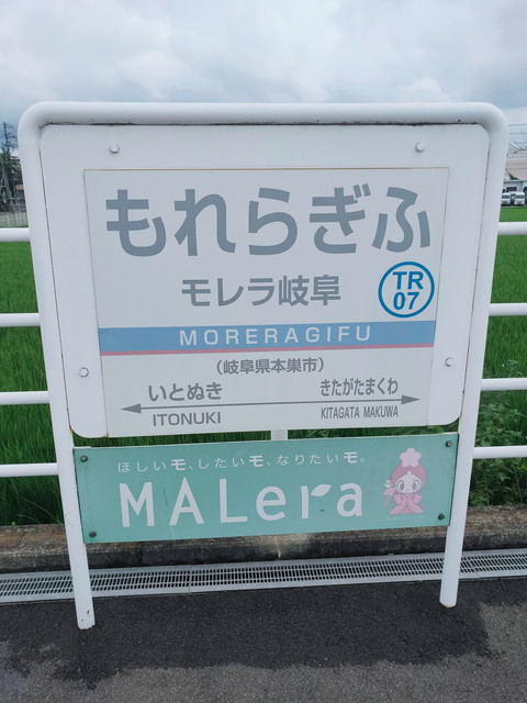 走り出して揖斐川の立派な鉄橋をトコトコとレールバスがいくのは少々アンバランスな感じで、東大垣駅までは東海道本線とほぼ並行していきます。ここで反対列車と行き違いを行い、あとは少し乗降がある程度でした。モレラ岐阜駅でドッと降りて車内がだいぶ静かになりました。駅から少し歩いていくとショッピングモールのモレラ岐阜があります。