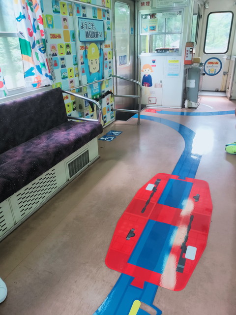 列車はプラレール列車でカーテンや床などにいろいろとプラレールが描かれています。