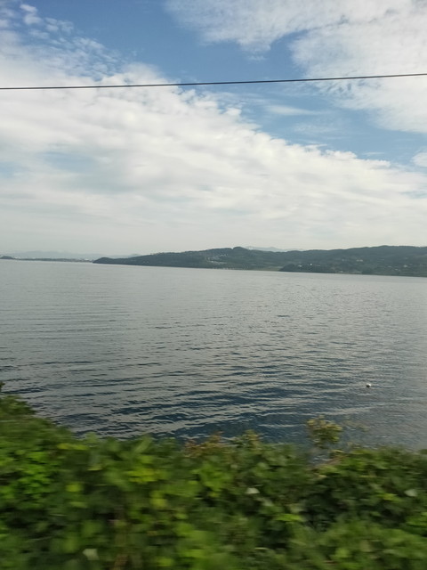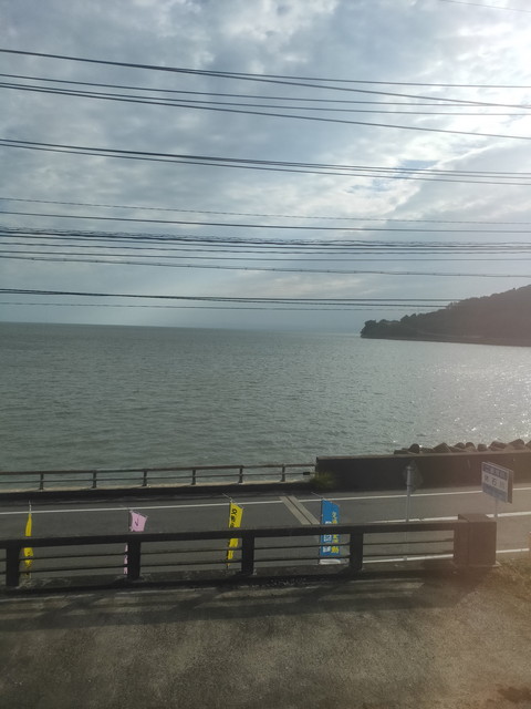 6分停車して大村線に入り、右側に時々西九州新幹線の高架橋を眺めつつ進んでいきます。竹松駅からは各駅停車となり、大村湾に沿いながらゆっくりと走ります。