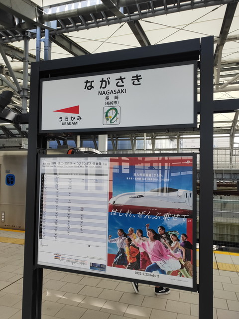 再び西九州新幹線に乗って長崎を目指します。昨日乗れなかった新大村~長崎を乗車して完乗となりました。昼間だけあって博多方面から乗る人はだいぶ減り、地元のお試し乗車がかなり目だちます。
