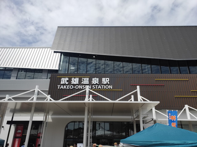 武雄温泉駅に着いて、駅前のイベント会場でお昼を買い駅の待合室で食べていきました。