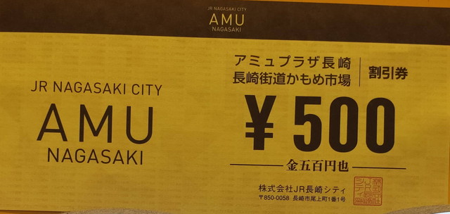 ・長崎アミュプラザか長崎街道かもめ市場で使える500円分クーポン