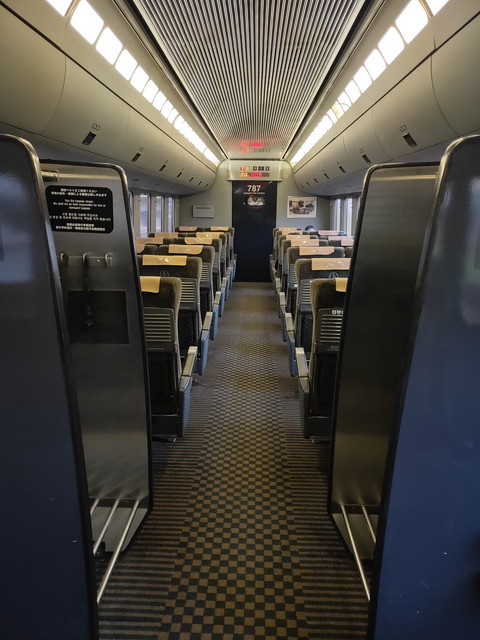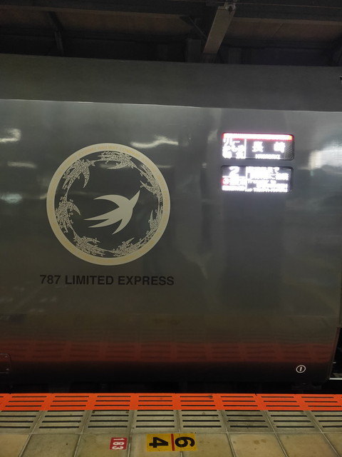車両は787系の8両編成で小倉寄りに自由席が4両あります。6号車が64席、その他は56席なので若干6号車の着席チャンスが高いです。