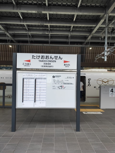 この列車は嬉野温泉に停車しますので、嬉野温泉を出てすぐに武雄温泉駅到着のアナウンスが流れます。駅間がわずか6分なので、自由席確保を考えるならば行動開始のサインになると思います。