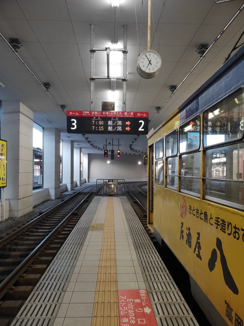 2022年10月23日(日)、7時ちょうど発の越ノ潟行きはいわゆる路面電車風。乗客は自分一人だけという意外な展開で始まります。