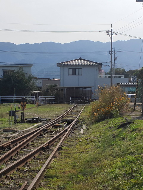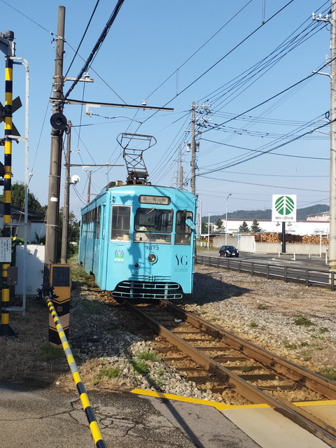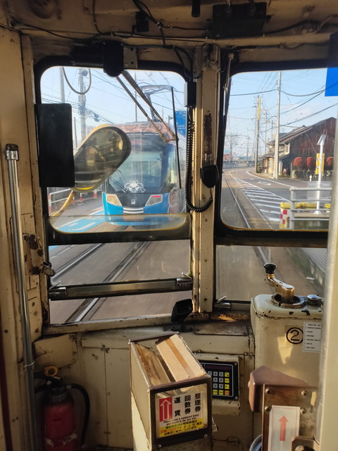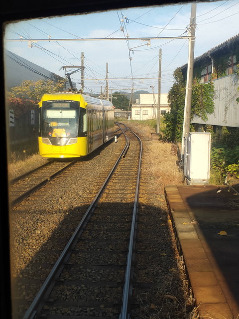 県道の上を一直線に走っていくので、おおよそ7分前後で反対列車とすれ違うのが見られます。