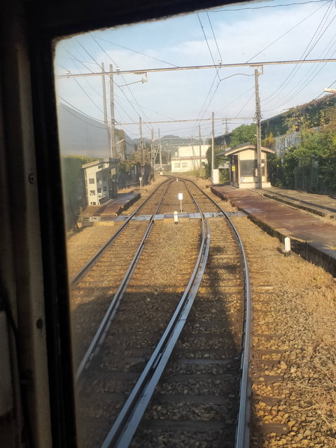 単線区間になるので、駅での行き違い停車がところどころであります。