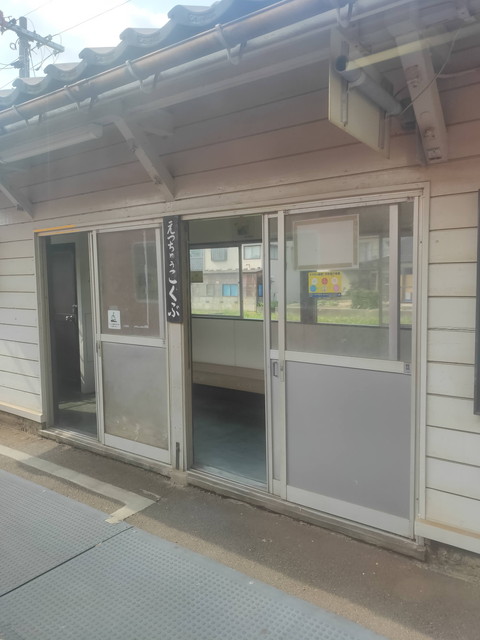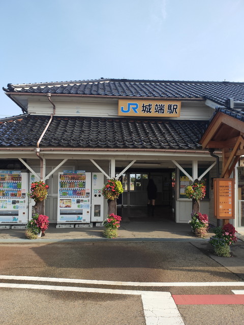 海が近づいてきて終点越ノ潟駅に定刻7:49に到着。高岡駅から24駅、約50分の旅でした。