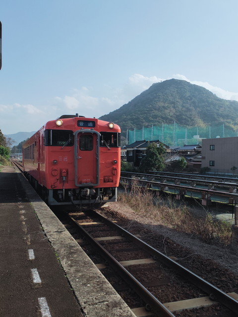 反対からやってきた列車もキハ47系の2両編成で朱色一色でした。