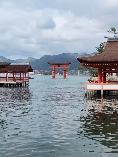 潮が引いてる時に厳島神社を見てもあんまりパッとしないので、まだ潮が満ちている早い時間にやってきて正解でした。