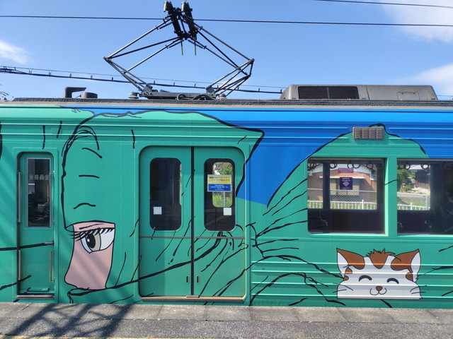 上野市駅は別名忍者市駅と呼ばれ、伊賀市が伊賀流忍者の里として有名なのもあって、これをウリにしています。列車の前面にもくノ一の顔が描かれていたりします。