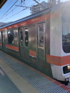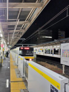 西船橋で下車してから武蔵野線に乗り換えます。3連休の中日で早朝からディズニーを目指すような人が多く乗り換えてきました。予想通り舞浜で大半が下車して、空いた車内で東京へと向かいます。折り返しには多くの人が乗りこんでいきました。
