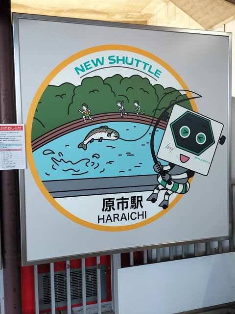 途中に原市という駅があるのですが、お笑い芸人の”ハライチ”の原点はここだということで、実際に降りてみました。なんてことはない駅ですが、上下線がすごく離れていて、間を新幹線がひっきりなしに通っていきます。