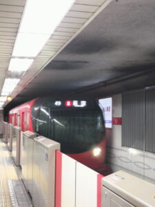 品川からは羽田空港行きの特急に乗っていきます。スーツケースを持った人たちが多く乗っていますが、何とか座っていけました。