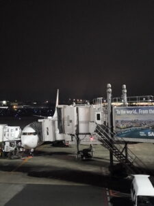 何となく40分遅れくらいになりそうだったので、到着地での夕食は諦めて、弁当を買っていきます。離陸は19:08。お弁当を機内で食べながら出雲空港へ。着陸は20:33でした。