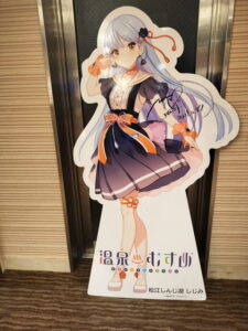 連絡バスは50分遅れの20:50に発車。20人ほどの乗客を乗せて冷たい雨の降る中を走っていきます。途中松江駅で2人を残して下車していき、松江しんじ湖温泉駅前に到着。ホテルまでは7分ほど歩く感じですが、濡れていくこと必至です。