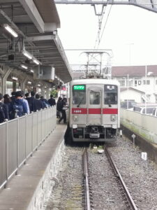 館林行きは東武カラーの6両編成で、土曜日ということもあって部活に出る高校生を中心にすぐにいっぱいになります。