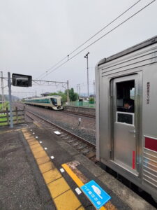終点間近の多田駅で何と9分も停車!どういうこと?と時刻表を見てみると、どうやら葛生発の特急列車との行き違いのようで、確かに特急列車が通過していきました。これで想像がつくように終点の葛生駅はホームが1面1線しかないということです。