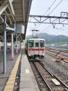 天王宿駅から相老駅まで歩いていき、相老駅に着くとちょうど乗る予定の列車が到着しますが10分停車なので落ち着いて乗車できます。2駅先の大間々止まりということもあり車内は空いています。