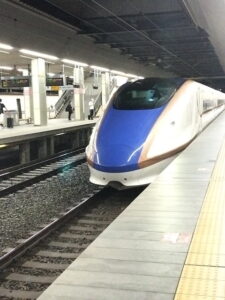 新幹線駅にあるお土産店もかなり混雑していました。行楽客がかなりいる中、それでもはくたか号の自由席を目指します。何とか座れたので長野までしばし休憩です。