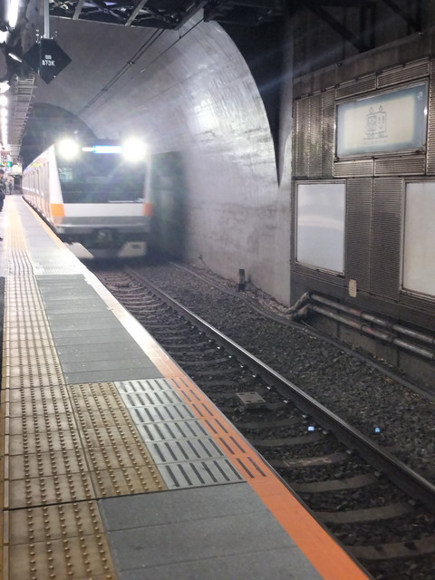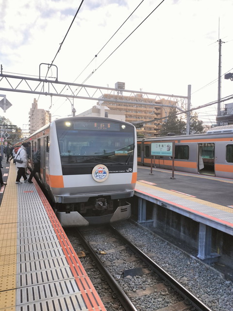 三鷹で快速(いわゆる各駅停車)に乗り換えます。こちらもなかなかの混雑ぶりです。10両編成なのでグリーン車はついていません。