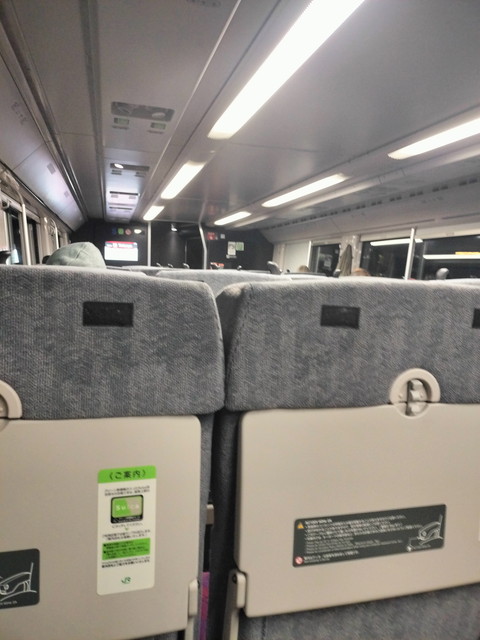 この日は御茶ノ水駅からスタートです。中央線でやってきたのは中央特快の12両編成で、まだグリーン車が無料で乗車できるタイミングだったのですかさずグリーン席へ。1階のほうは窓側も空いていました。新宿で乗客が入れ替わってかなり混雑します。まだお手洗いは使えないものの、暖房がかなり行き届いているだけでも助かります。