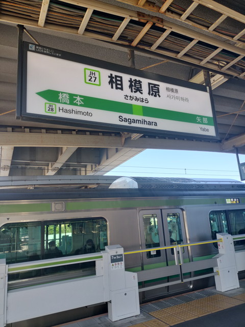快速列車とすぐに接続だったのですが、予想通りかなり混雑していたので、普通列車の橋本止まりに乗車します。快速ほどではないにしろ、やはり混雑していて、菊名で東急東横線との交差で入れ替えがあり、新横浜でも新幹線の乗り降りで結構入れ替わります。