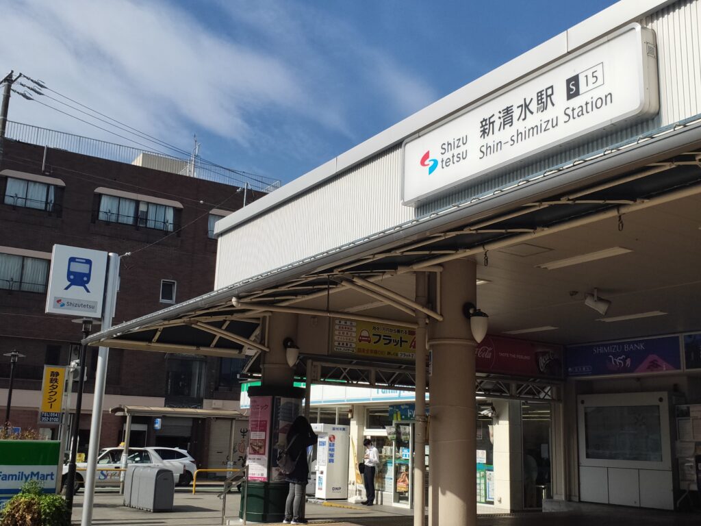 駅舎の看板に「Shin-shimizu Station」の文字が白く輝いている。左にはファミリーマート、右には清水銀行。通勤客がちらほらと改札へ吸い込まれていく、ごく普通の月曜の朝だ。