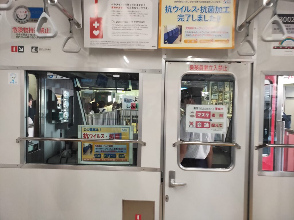 「マスク着用・会話は控えて」——2021年らしい、コロナ禍の車内風景だ。